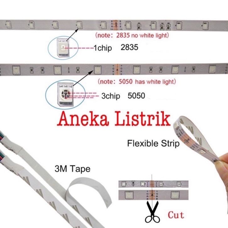LAMPU LED STRIP RGB 5050 WARNA WARNI IP44 5M AC 220V + ADAPTOR + REMOTE 5050 (LAMPU TIKTOK)