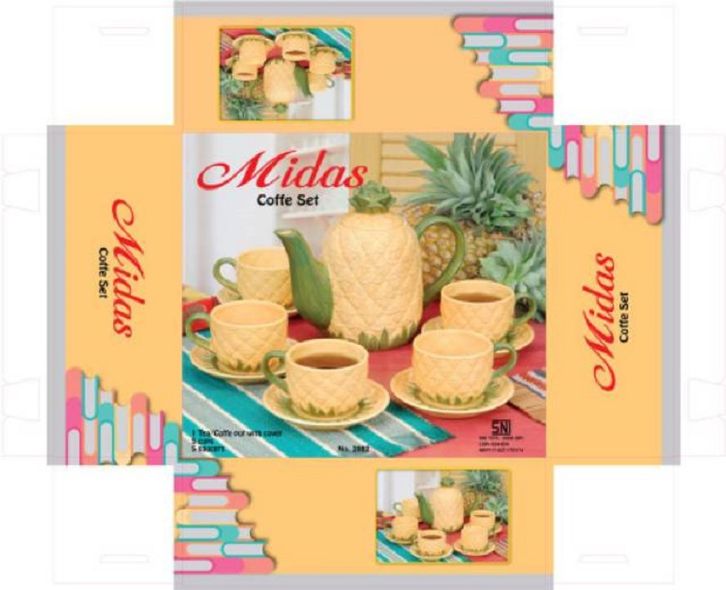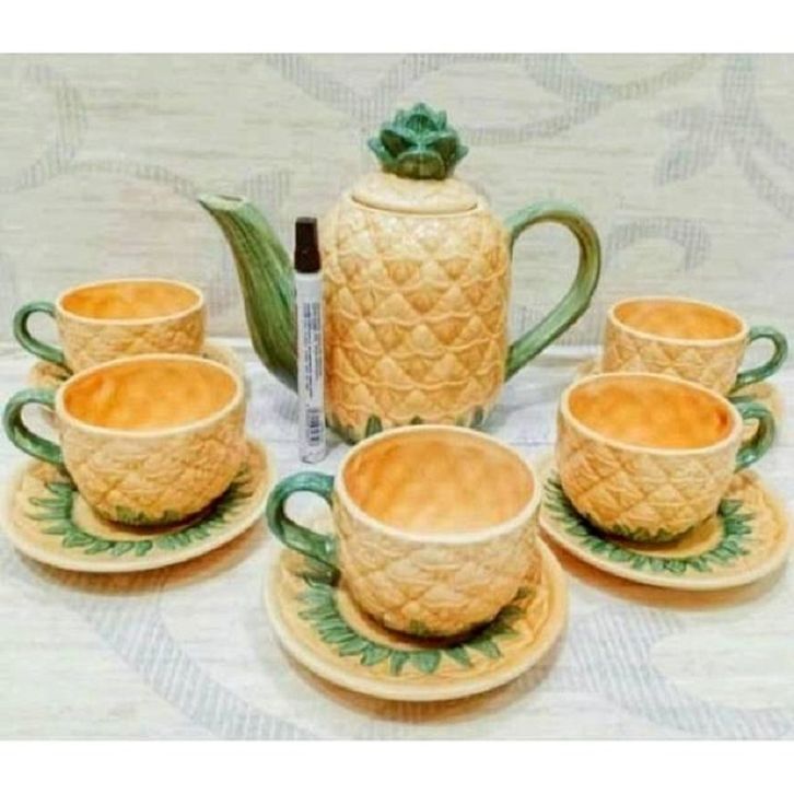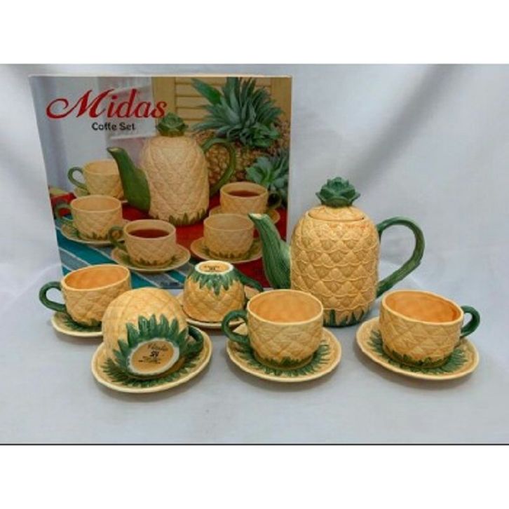 Coffee Set Cangkir Set Nanas 6 Pcs dengan dus kado Merk Midas - Teko Set / Tea set - Kado Wedding - Hiasan Rumah