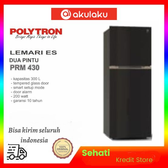 KULKAS POLYTRON PRM 430 LEMARI ES 2 PINTU TEMPERED GLASS