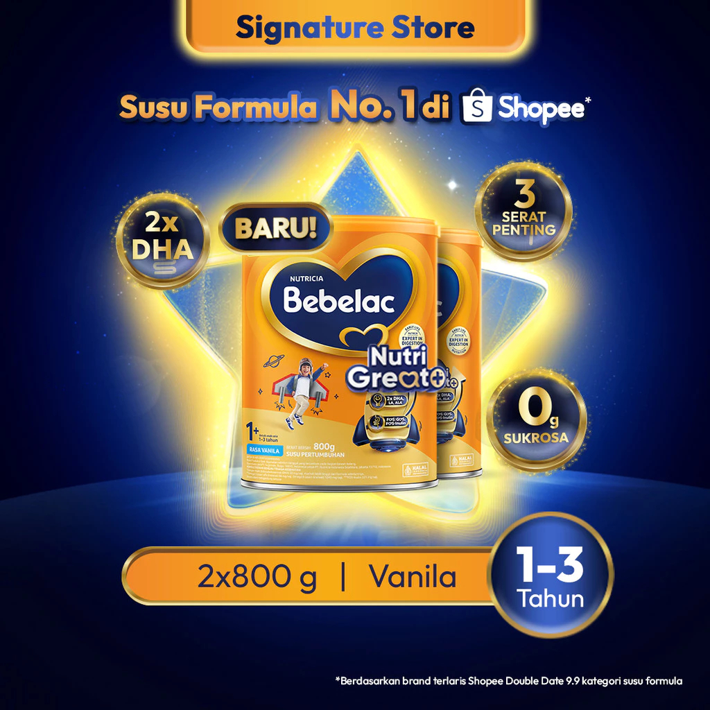 (Paket 2 Pcs) BEBELOVE 0-6 Bulan BEBELOVE 6-12 Bulan / BEBELAC 1+ (1-3 Tahun ) BEBELAC 3+ ( 3-6 Tahun) VANILA MADU 800gr