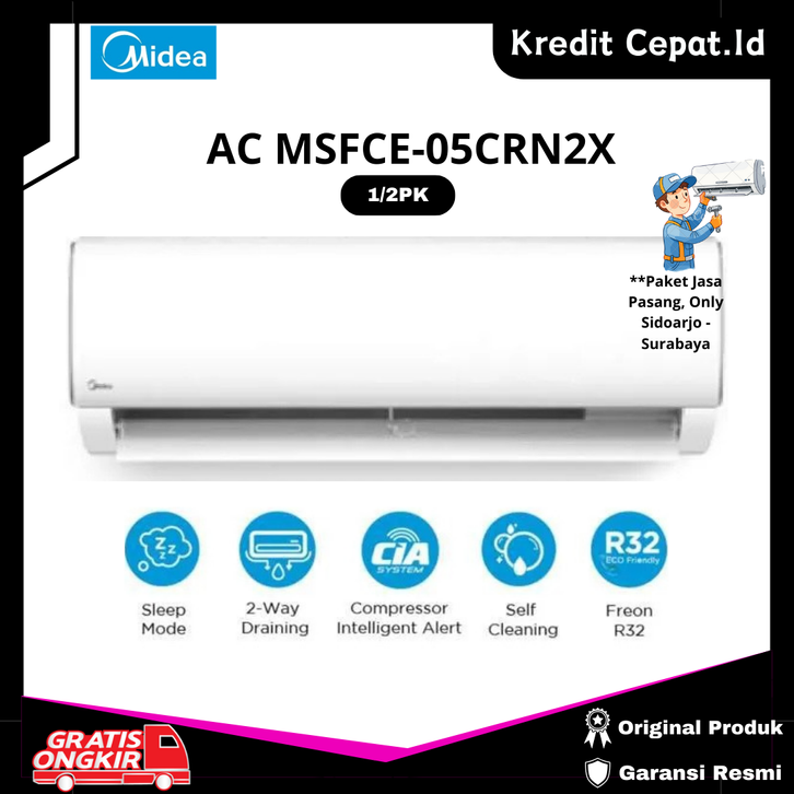 PAKET PASANG AC Midea 1/2 PK R32 MSFC05CRN2 / MSFC 05 CRN2 GARANSI RESMI - KREDIT CEPAT.ID