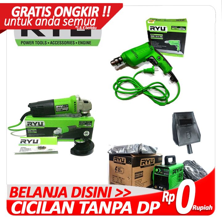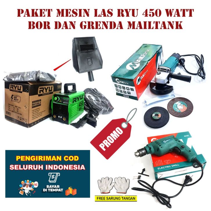 (GRATIS TANPA DP ✔️) PAKET HEMAT 3 ITEM MESIN LAS 450 WATT YU 120A TRAFO TRAVO LAS + MESIN GERINDA 4 INCH + BOR RYU 10MM