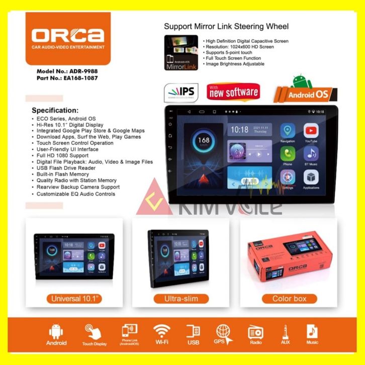 Head Unit Android ORCA ADR- 9988 Eco Series 9 Inch -10 Inch