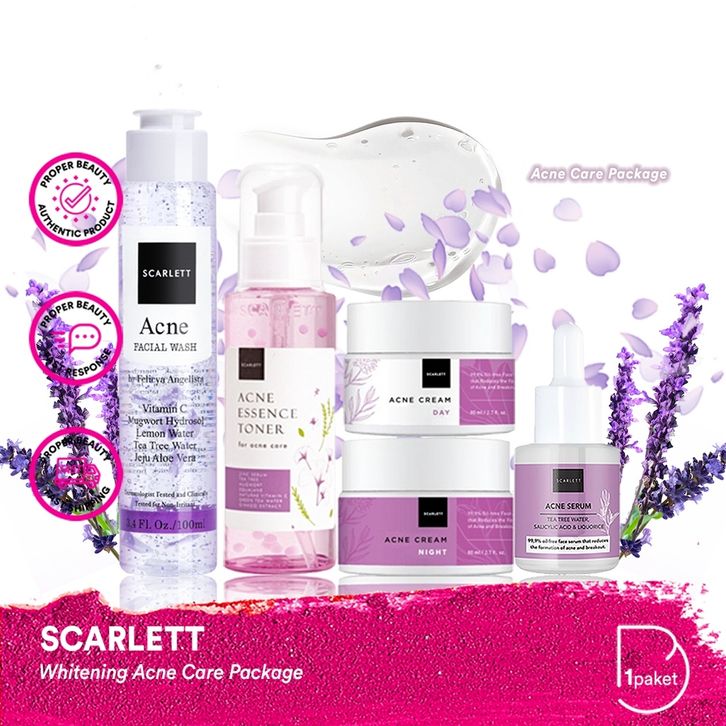 Best Combo Scarlett Whitening Acne Series + Toner (Isi 5 Item)
