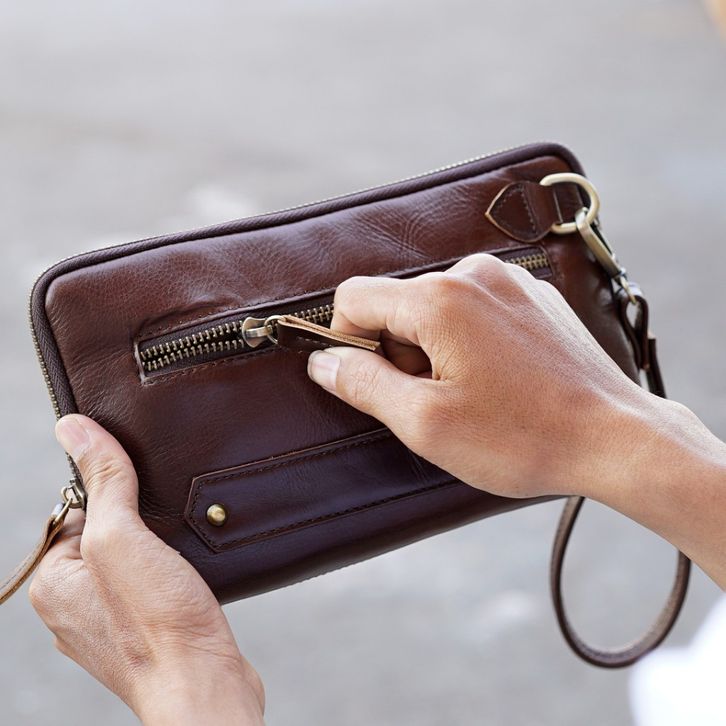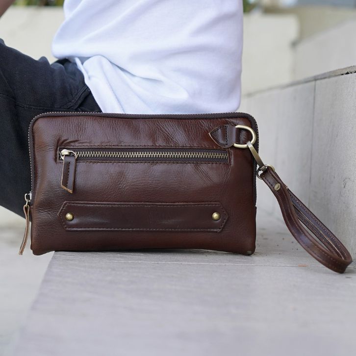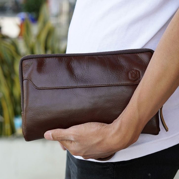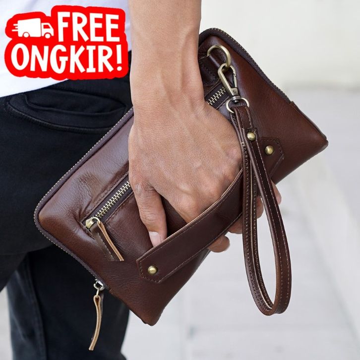 Clutch Pria Kulit Sapi Asli Kasual Brown