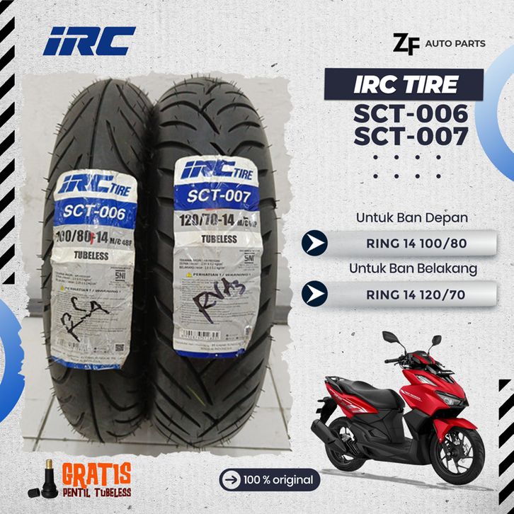 SEPASANG / SATUAN BAN MOTOR VARIO 160 IRC PCX 150 CBS SCT-006 & SCT-007 TUBELESS DEPAN BELAKANG