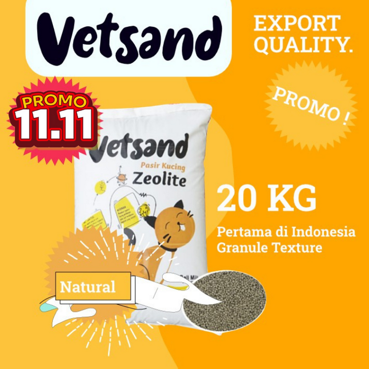 (KHUSUS JABODETABEK) Pasir Kucing Gumpal Natural 20 Kg Catlitter / Pasir Kucing Vetsand 20 Kg wangi & natural