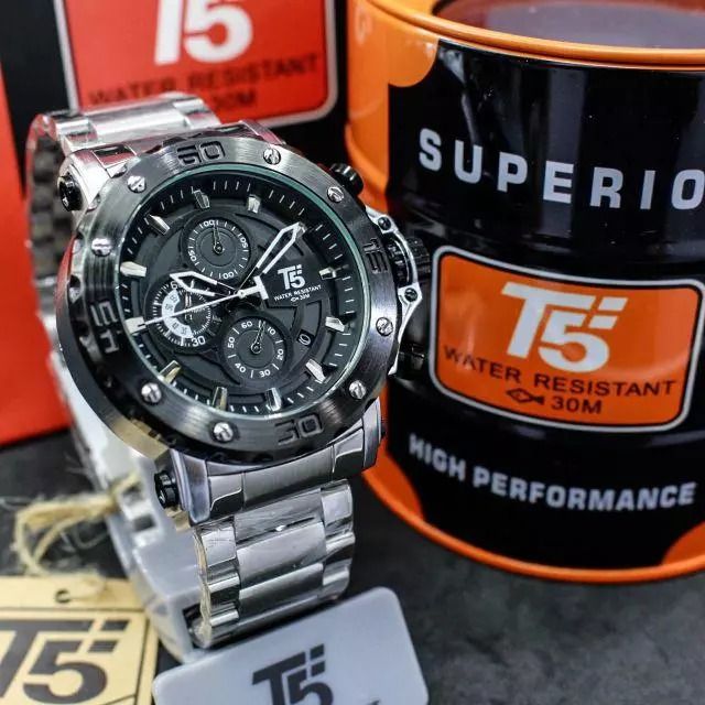 Jam Tangan Pria T5 H 3702 FULL BLACK Original Chronograph Bergaransi-Free tin box