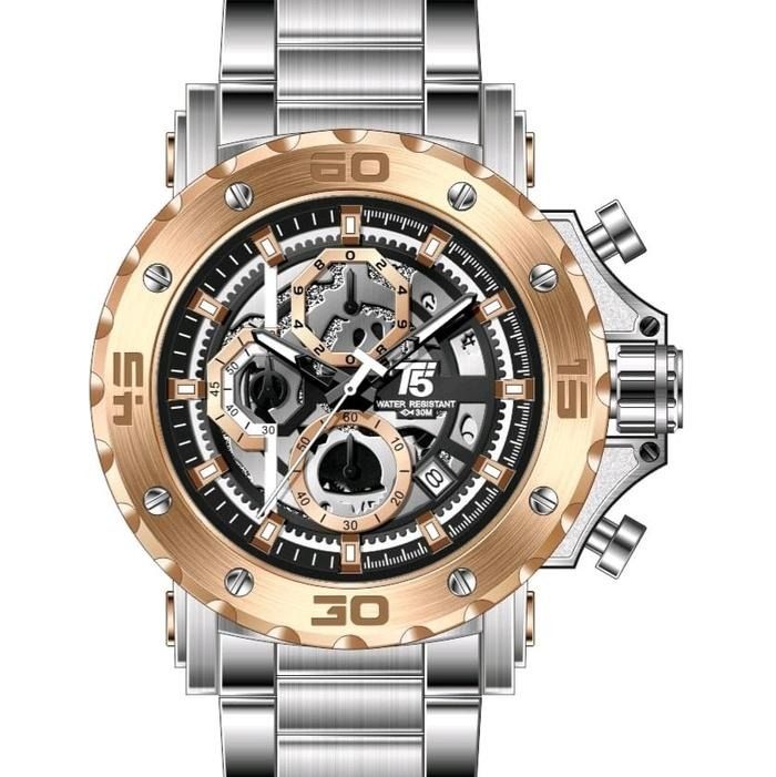 Jam Tangan Pria T5 H 3723 SILVER RING ROSEGOLD Original Chronograph Bergaransi-Free tin box
