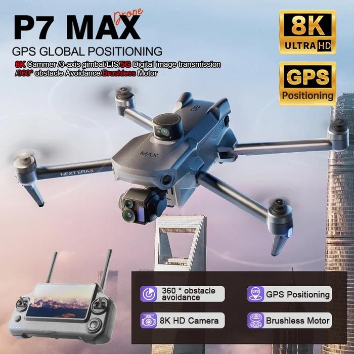 2025!! Drone P7 Max GPS 6KM 4K Camera 3-Axis Gimbal Stablizer Sensor Anti Tabrak RC Quadcopter Vs RC DJI Air 3S