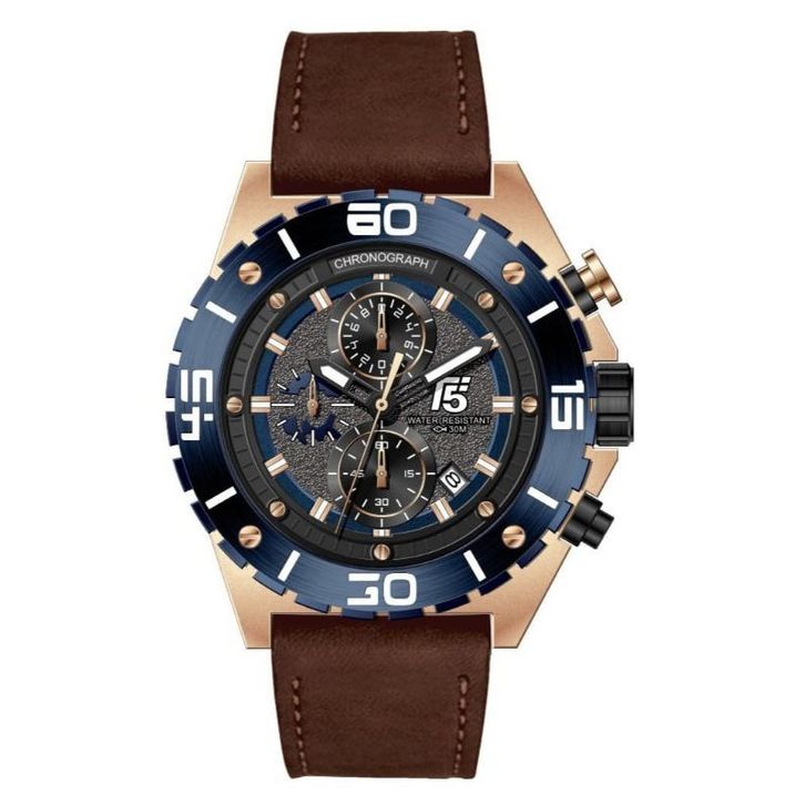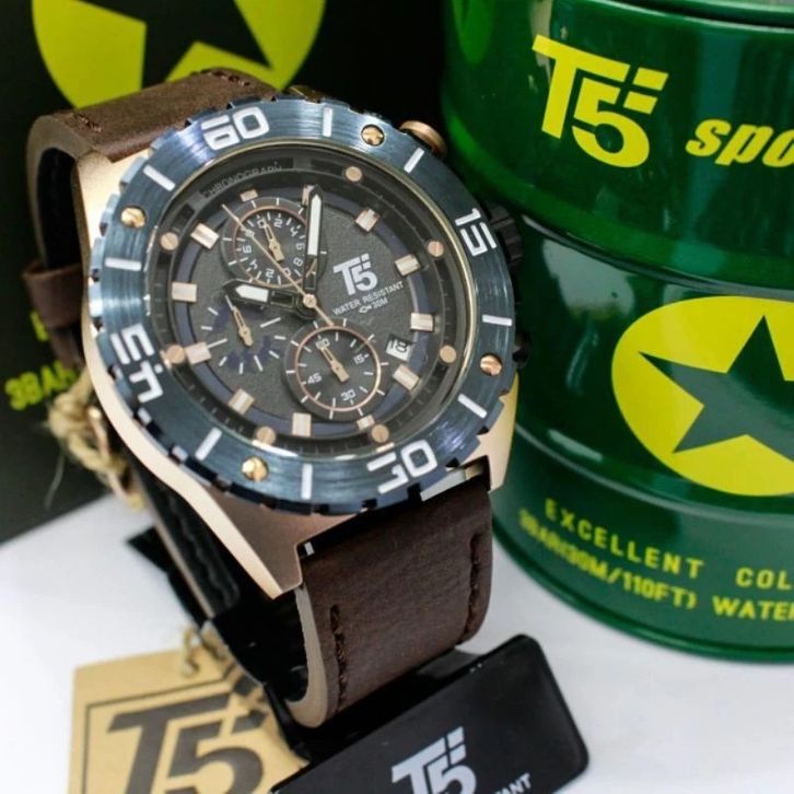 Jam Tangan Pria T5 H 3806 LEATHER BLUE ROSEGOLD Original Chronograph Bergaransi-Free tin box