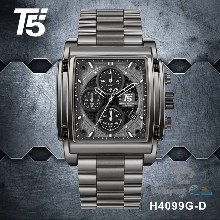 Jam Tangan Pria T5 H 4099 GREY Original Chronograph Bergaransi-Free tin box