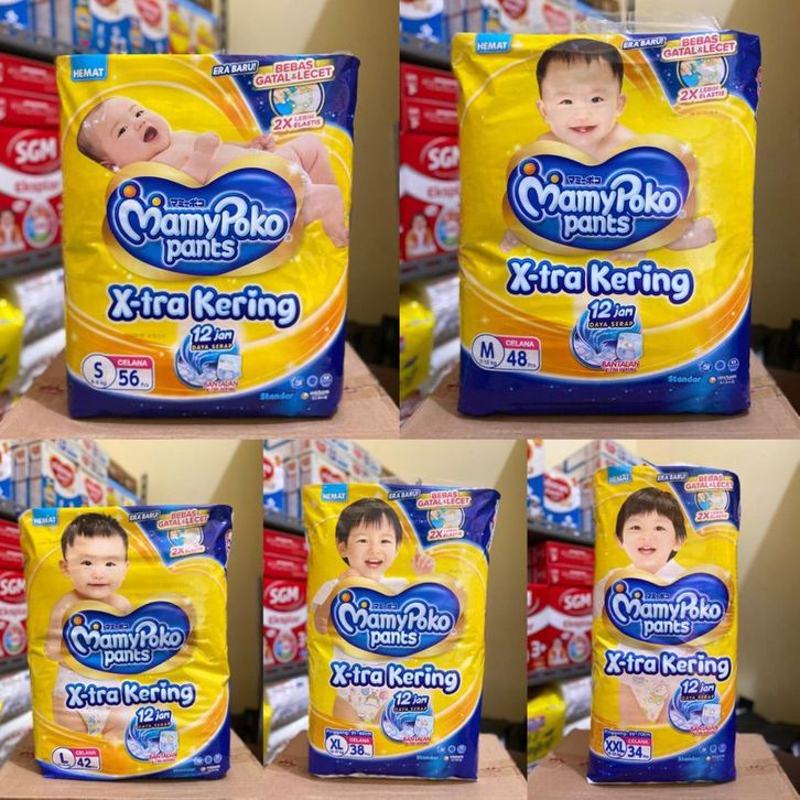 GRATIS ONGKIR pampers Mamy Poko Pants ukuran S40/M34/L30/XL26/XXL 24/Karton isi 4 pak