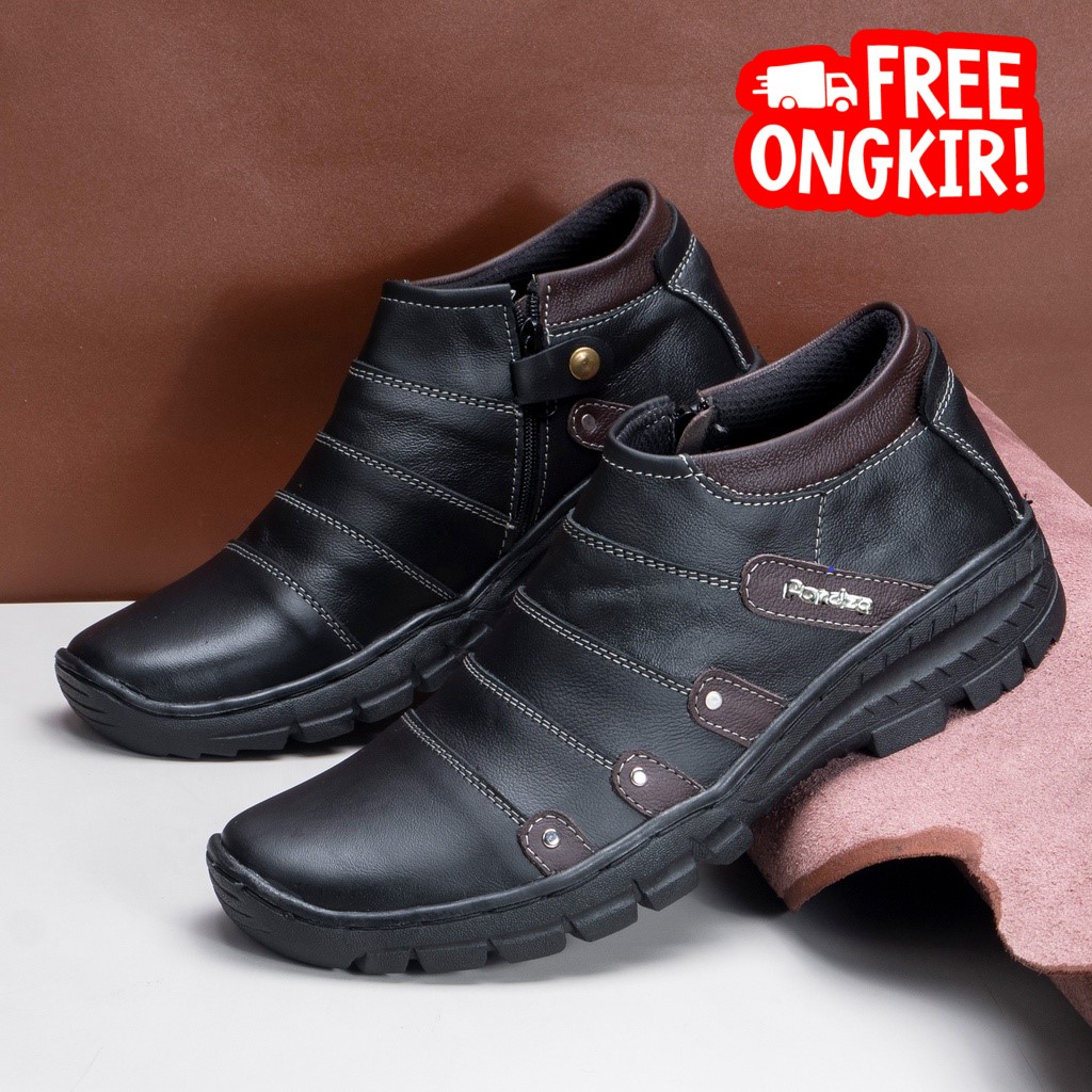 Sepatu Boot Pria Kulit Asli Boots Touring Casual Zipper Non Safety Fordza BKS07