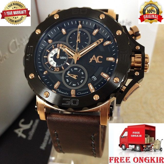 Jam Tangan Pria Alexandre Christie AC 9205 Black Rosegold Original Garansi 1 Tahun RESMI