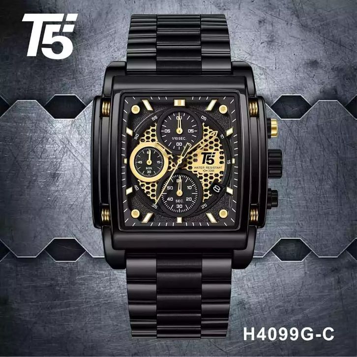 Jam Tangan Pria T5 H 4099 BLACK Original Chronograph Bergaransi-Free tin box