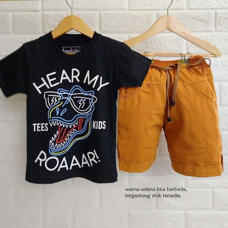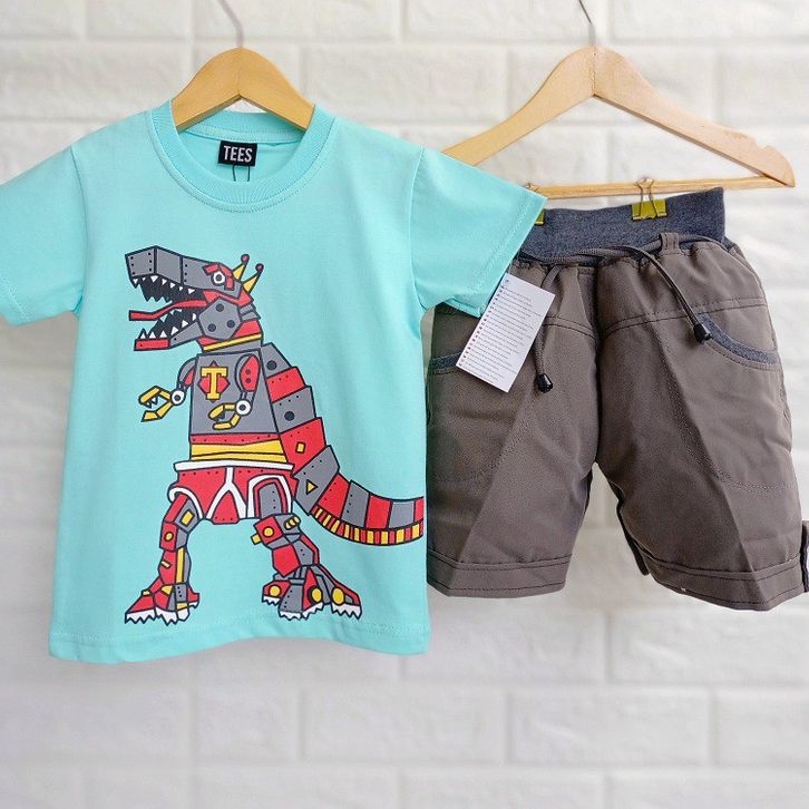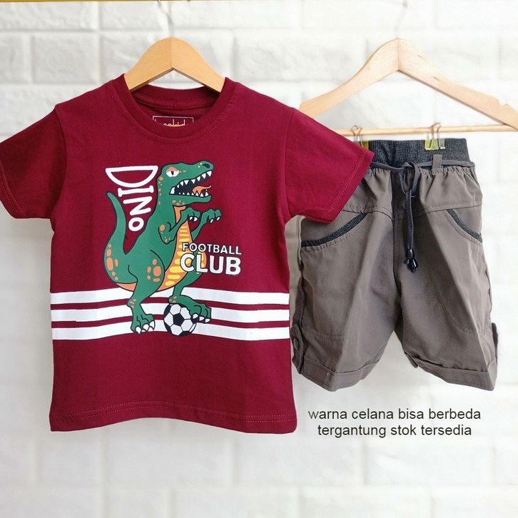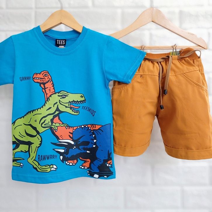 SETELAN ANAK LAKI LAKI DINO CELANA PENDEK DENIM 1 TAHUN - 9 TAHUN BAJU ANAK COWOK