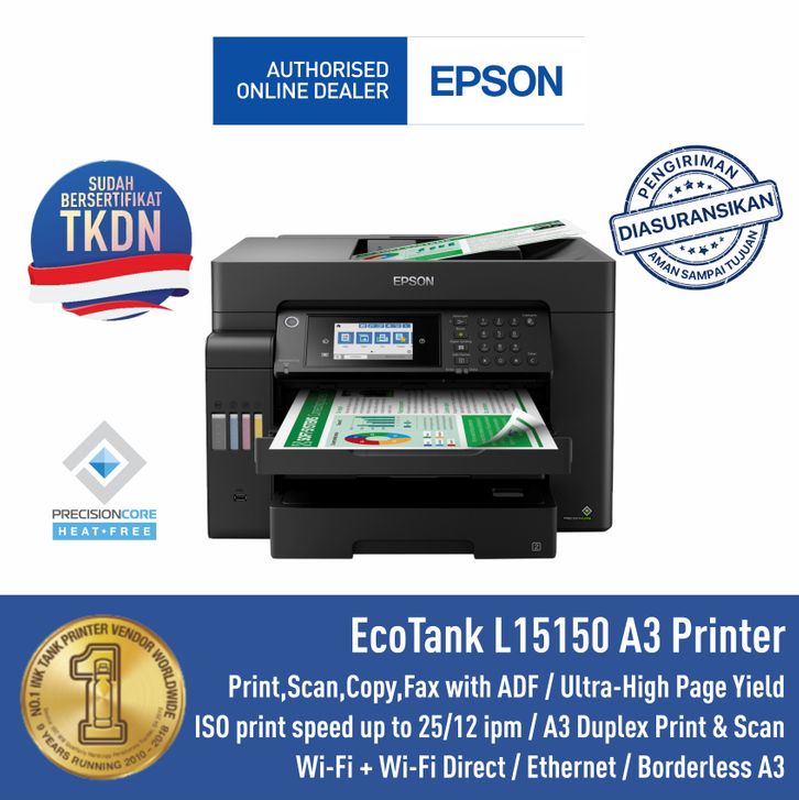 EPSON Printer Epson L15150 L-15150 L 15150 A3 Duplex Pigment Print Scan Copy Resmi