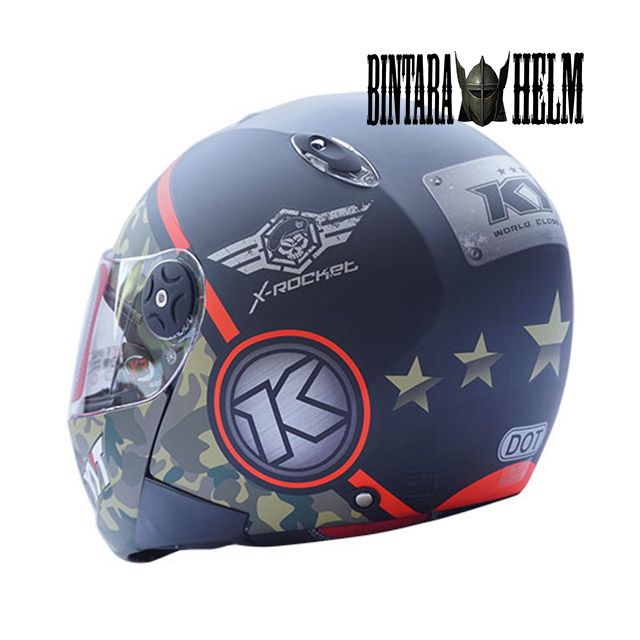 HELM kyt X ROCKET motif # BLACK DOFF GREEN original helm kyt full face | singgle visor free packing dus