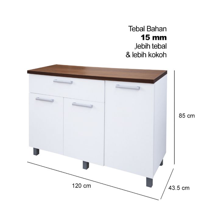 IDEA Furniture Kitchen Set Lemari Dapur Bawah Putih Modern Minimalis - 3 Pintu Bawah Indiana
