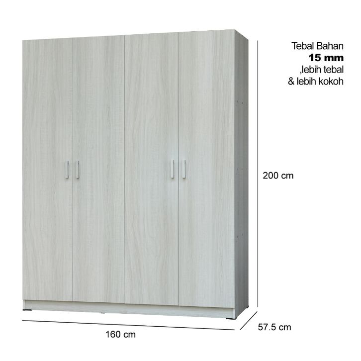 Lemari Pakaian Minimalis Kayu 4 Pintu Modern Murah - Idea Furniture Madison Frosteak