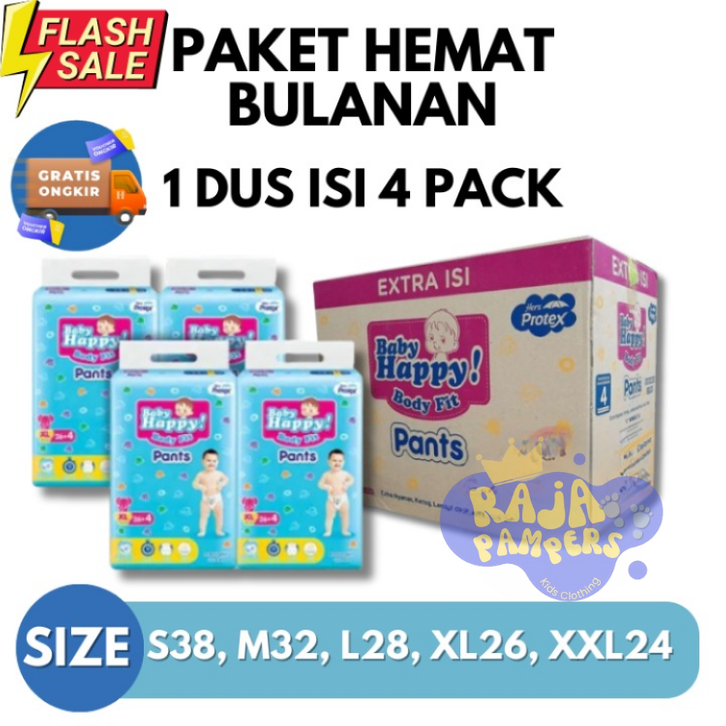 (FREE ONGKIR) PAKET HEMAT 1 DUS - BABY HAPPY PANTS L30/ M34/XL26/XXL24 [1 DUS] / PAMPERS BAYI 1 DUS / POPOK BAYI