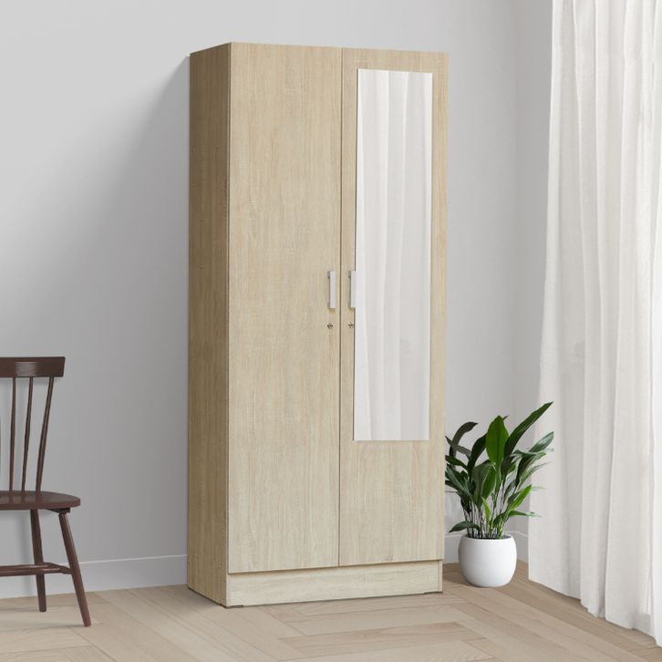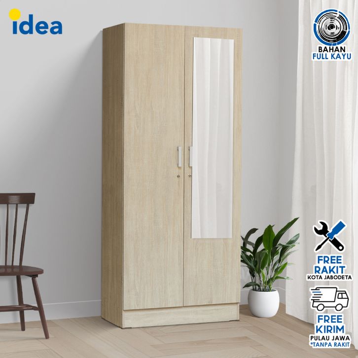 Lemari Pakaian Minimalis Kayu 2 Pintu Cermin Modern Murah - Idea Furniture Wanaka
