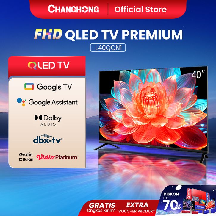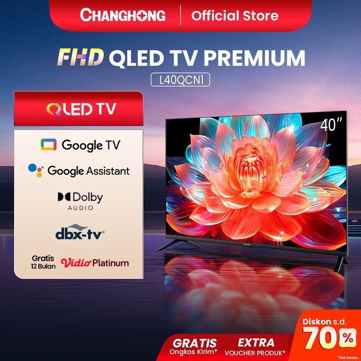 Changhong QLED TV 40 inch FHD Dolby Audio Google Play Netflix Google Assistant Smart TV Digital TV Free Vidio (L40QCN1