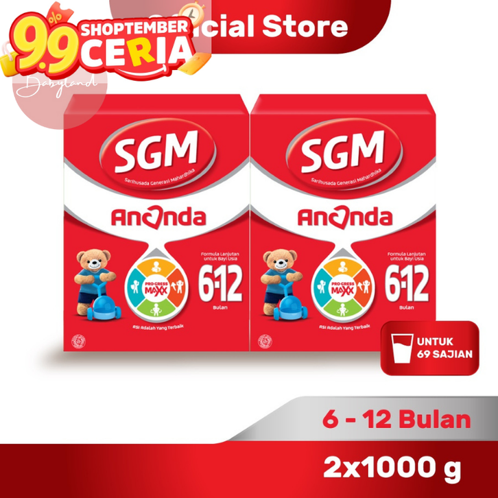 (FREE ONGKIR) PAKET ISI 4 DUS - SGM Ananda 2 (6-12 Bulan) Formula Bayi Bubuk 1000 gr