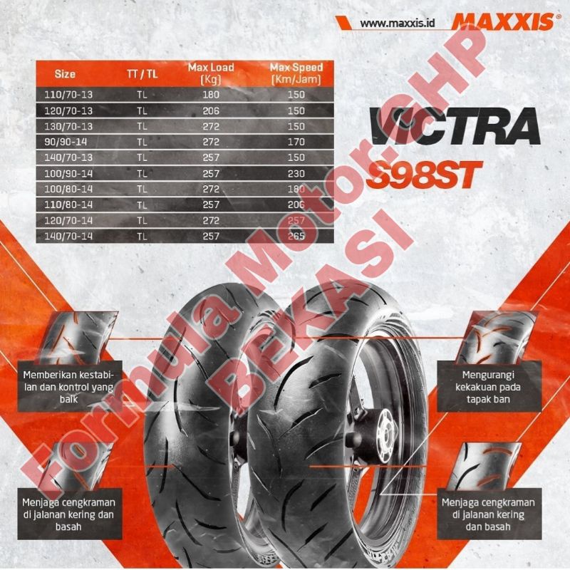 100/80-14 & 120/70-14 Ban Maxxis Victra S98 ST Tubeless - Sepasang Ban PCX-150 Ring 14
