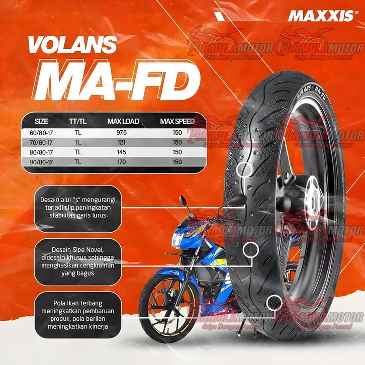 70/80-17 Ban Maxxis Volans MA FD Tubeless - Ban Motor Ring 17 Dual Compound Sport Touring