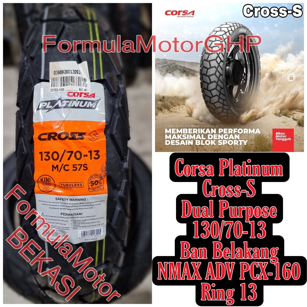 130/70-13 Ban Corsa Platinum Cross S Dual Purpose Tubeless - Ban Belakang NMAX / Piaggio NRG - Ban Motor Ring 13 Tubles