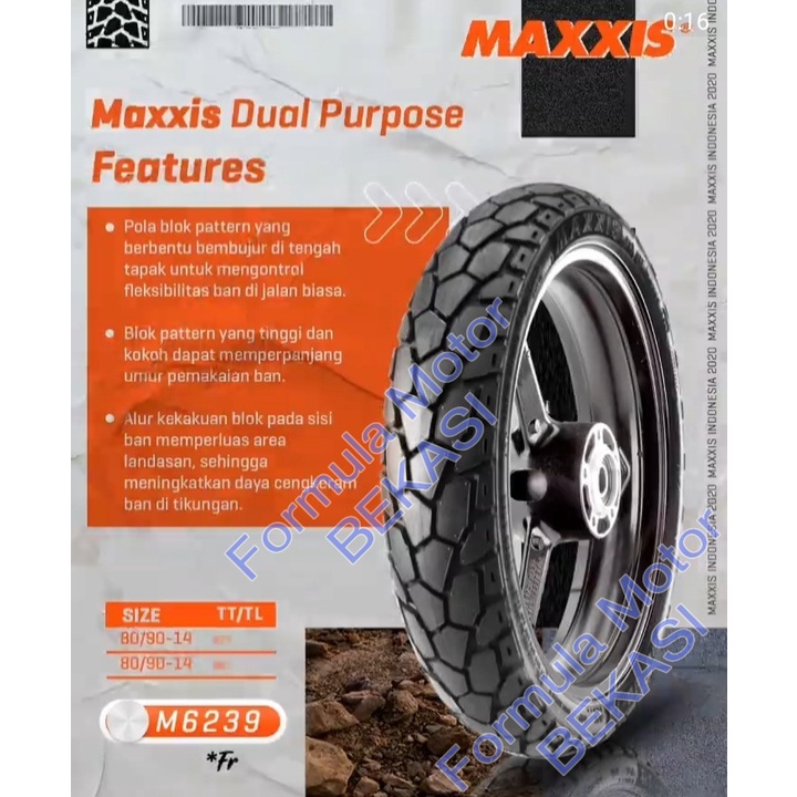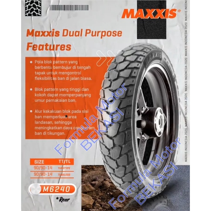 90/90-17 + 110/80-17 Ban Maxxis M6240/M6239 ON/OFF Road Tubeless - Sepasang Ban Motor Ring 17 Dual Purpose