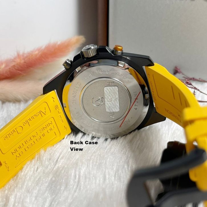 Original 100%!! JAM TANGAN PRIA ALEXANDRE CHRISTIE BLACK YELLOW RUBBER GARANSI RESMI