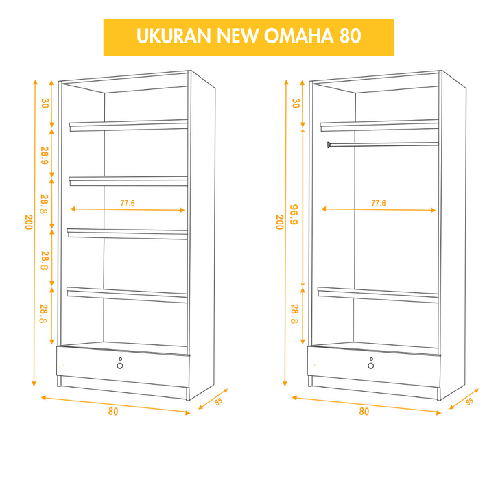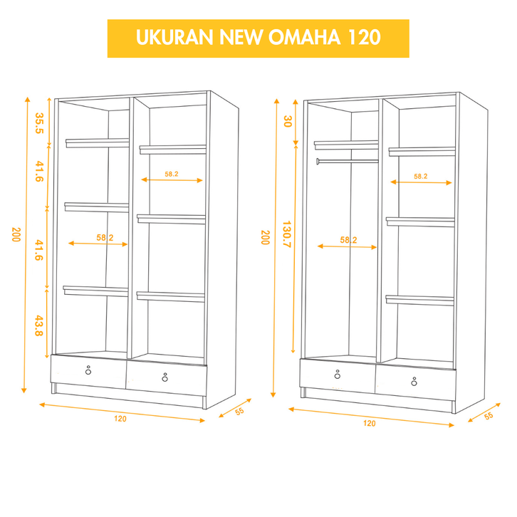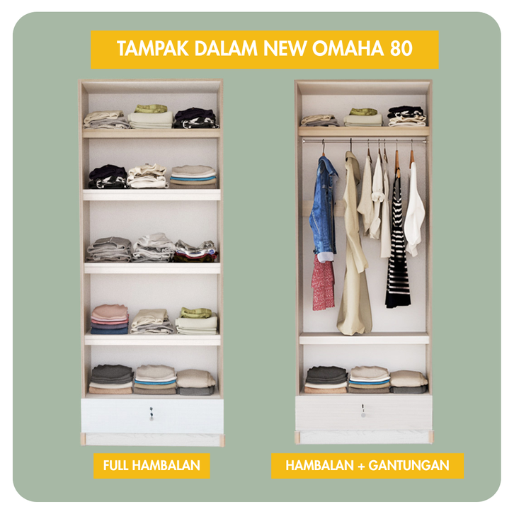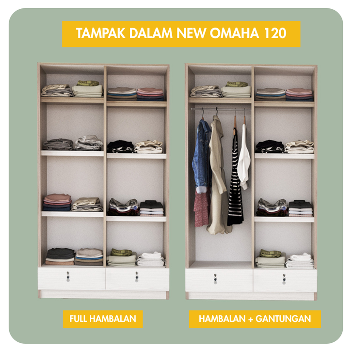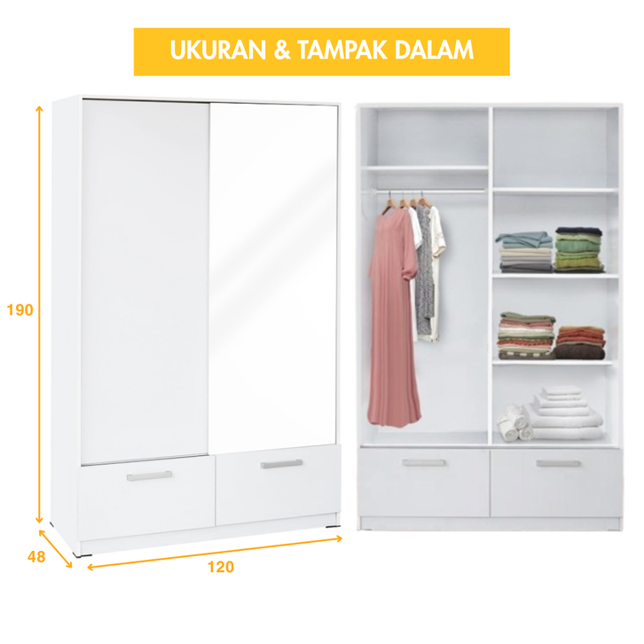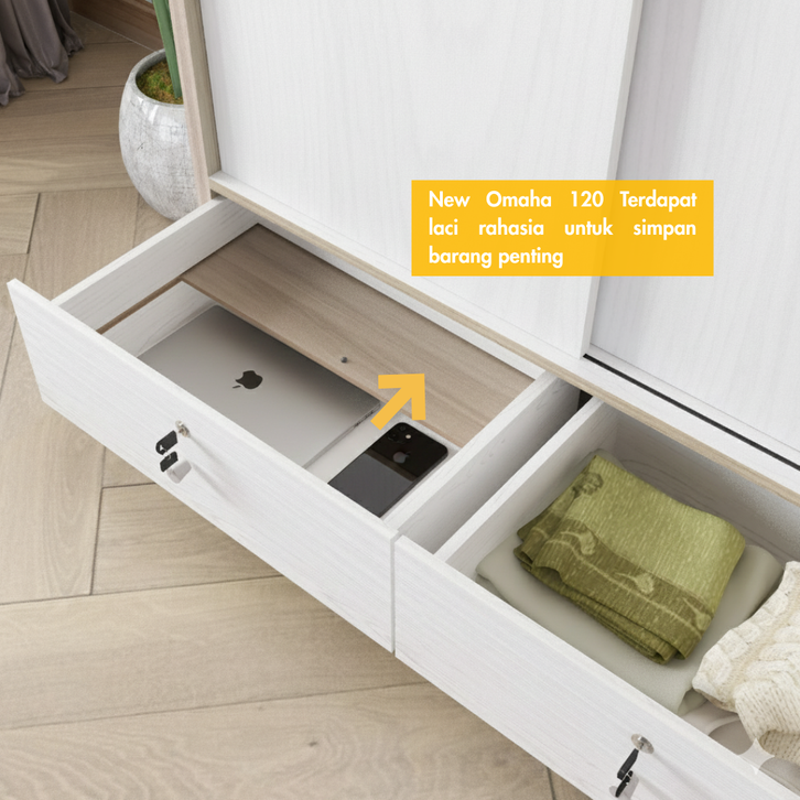 IDEA Omaha - Lemari Pakaian Kayu 2 Pintu Sliding Geser Minimalis