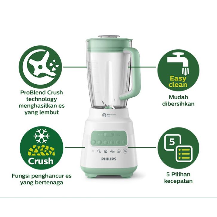 FREE ONGKIR PHILIPS 2L Blender Plastic Jar 4-in-1 HR2223/30, 4 Pisau, chopper, filter, dry mill, plastik, hijau