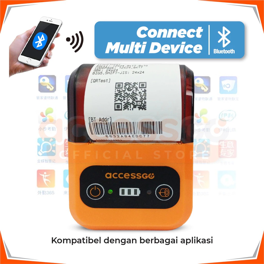 ACCESSGO PRINTER MINI BLUETOOTH PORTABLE THERMAL 58MM 80MM CETAK RESI ALAMAT PENGIRIMAN STRUK KASIR DLL STIKER 58 80 MM