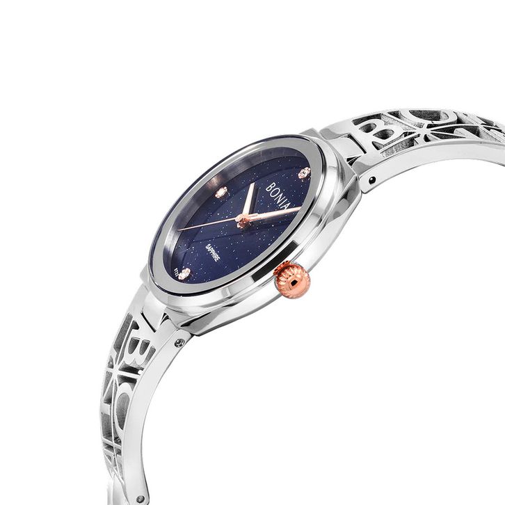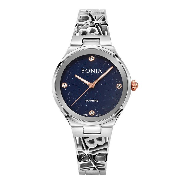 Original BONIA BNB1067-2383 Jam Tangan Wanita Analog Elegan 32mm Silver Biru Garansi Resmi 2 Tahun