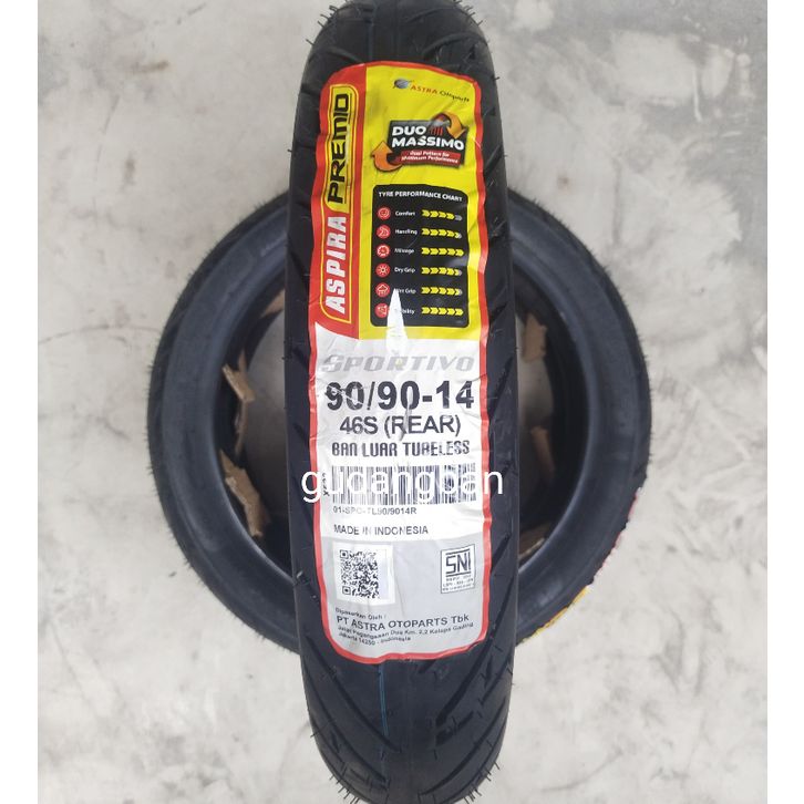 BAN LUAR MOTOR 90 / 90 - 14 Aspira Premio Sportivo PRODUKSI 2025 Medium Hard Matic TUBELESS Fre Pent
