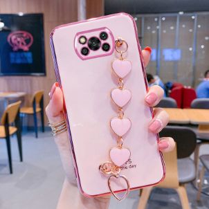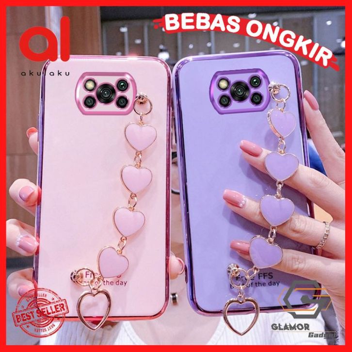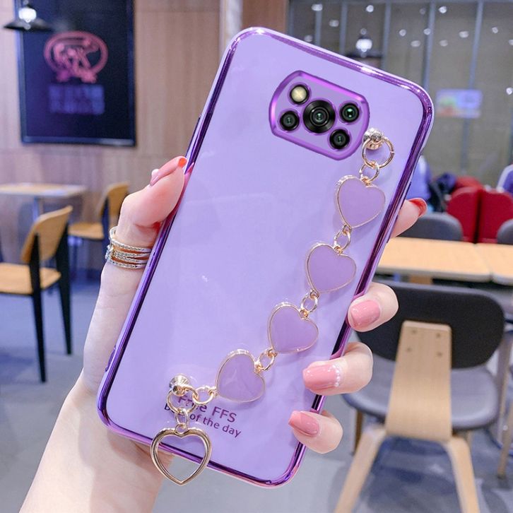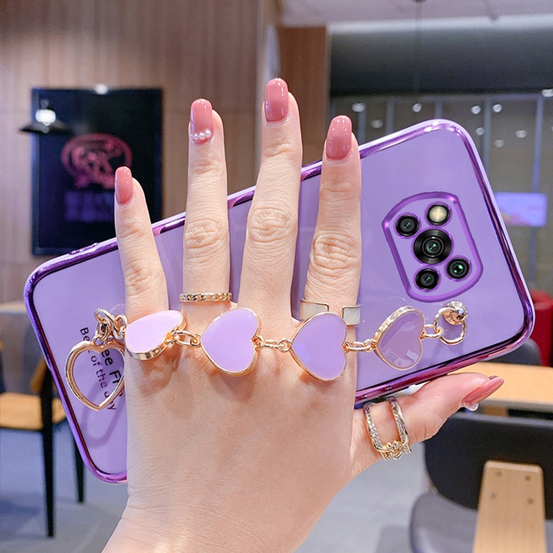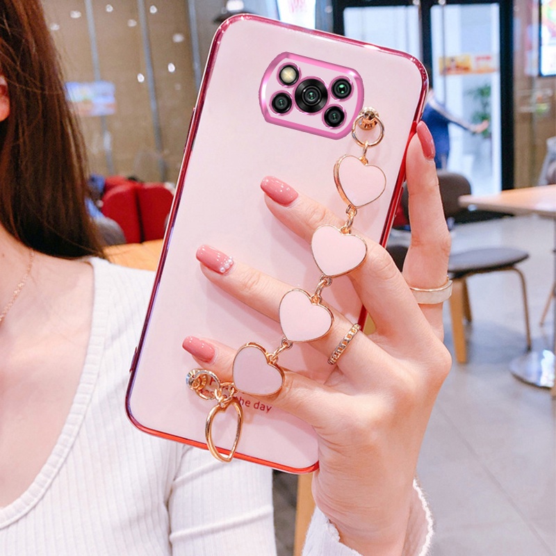 Soft Case Silikon Motif Hati Dengan Tali Rantai Untuk Xiaomi Poco X3 X3 Nfc X3 Pro