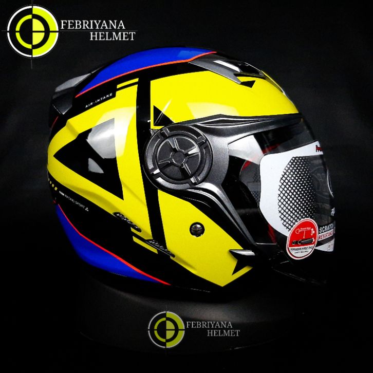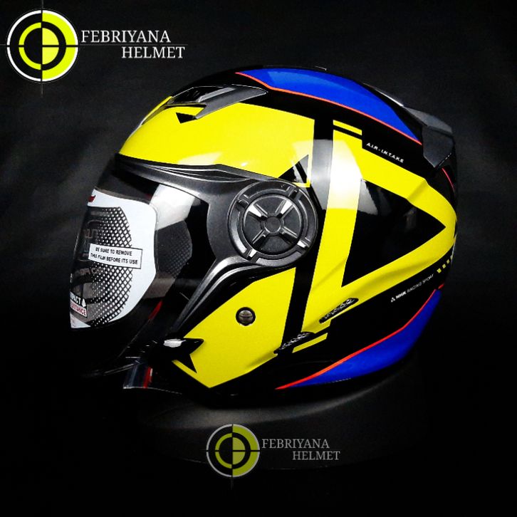 HELM NHK GLADIATOR GRANDE BLACK YELLOW GLOSSY HALF FACE NHK DOUBLE VISOR