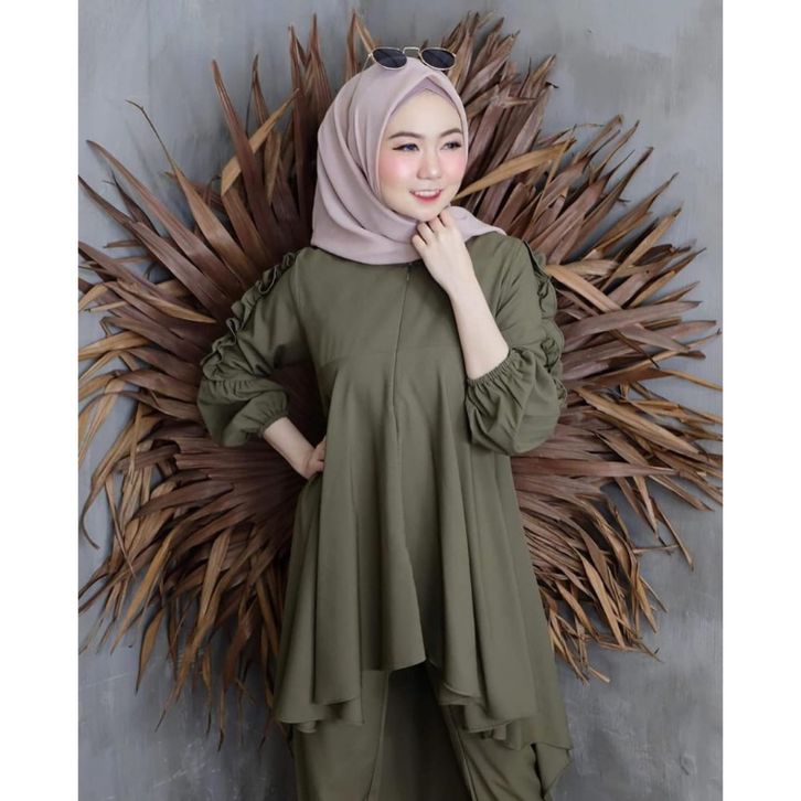 Sadewi Set 2in1 Matt Wollycrepe Premium Setelan One Set Muslim Wanita