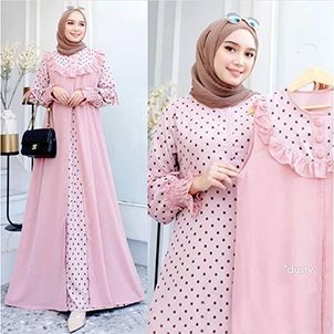 Kimiko Gamis Ceruty Baby Doll Set 2in1 Fit XL Setelan Dress Inner + Maxi Outer Matt Babydoll Cerutti Polka Full Puring