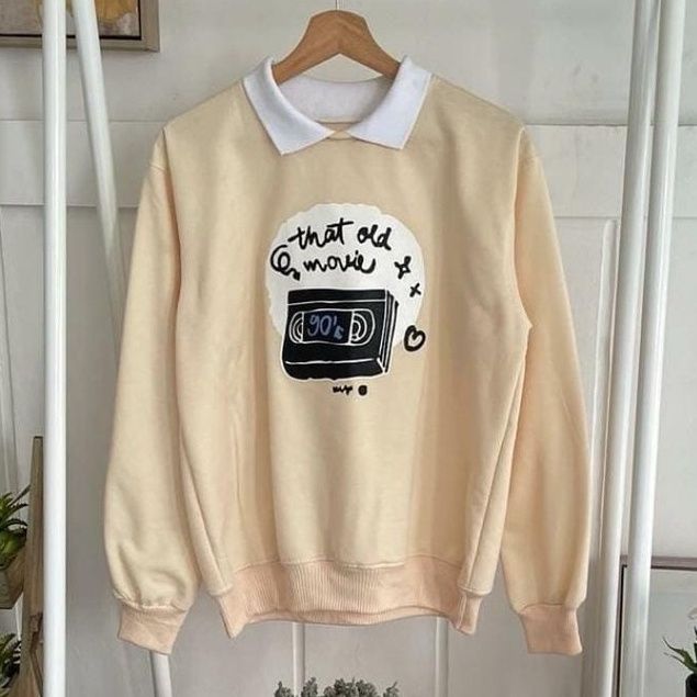 OLD MOVIE SWEATER KERAH FLEECE TEBAL PREMIUM OUTERWEAR OVERSIZE BASIC REMAJA WANITA OOTD KOREAN STYLE