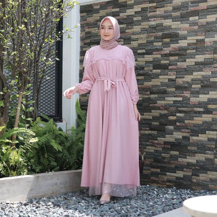 Mira Dress Gamis Maxy Brukat Polka Tile Dotty Fashion Gaun Pesta