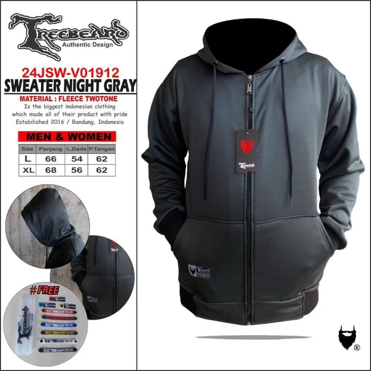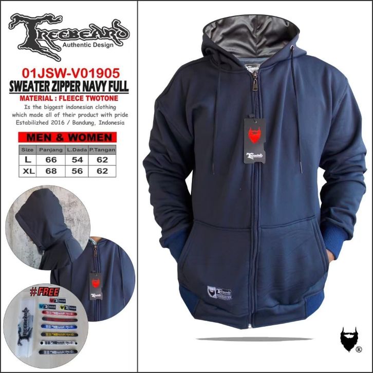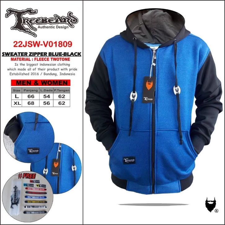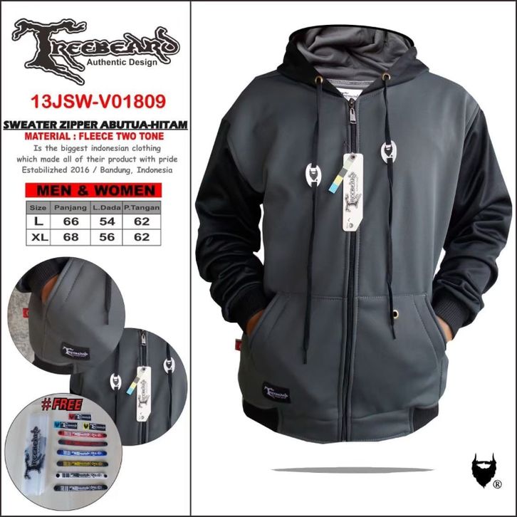 Jaket Hoodie Sweater Zipper Twotone Pria Wanita Casual Original Threebeard
