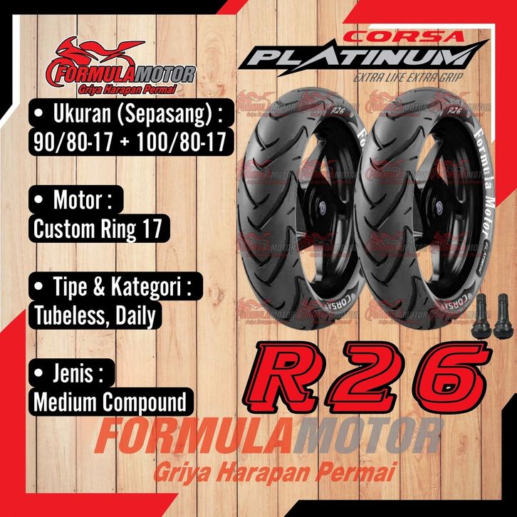 90/80-17 + 100/80-17 Ban Corsa Platinum R26 Tubeless - Sepasang Ban Motor Ring 17 Tubles