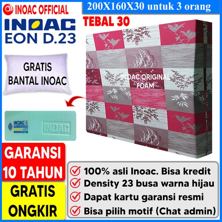 kasur busa inoac tebal 30 200x160x30 nomor 2 eon d23 garansi 10 tahun gratis ongkir asli inoac no 2 bonus bantal inoac