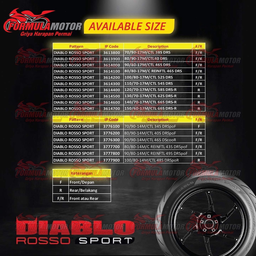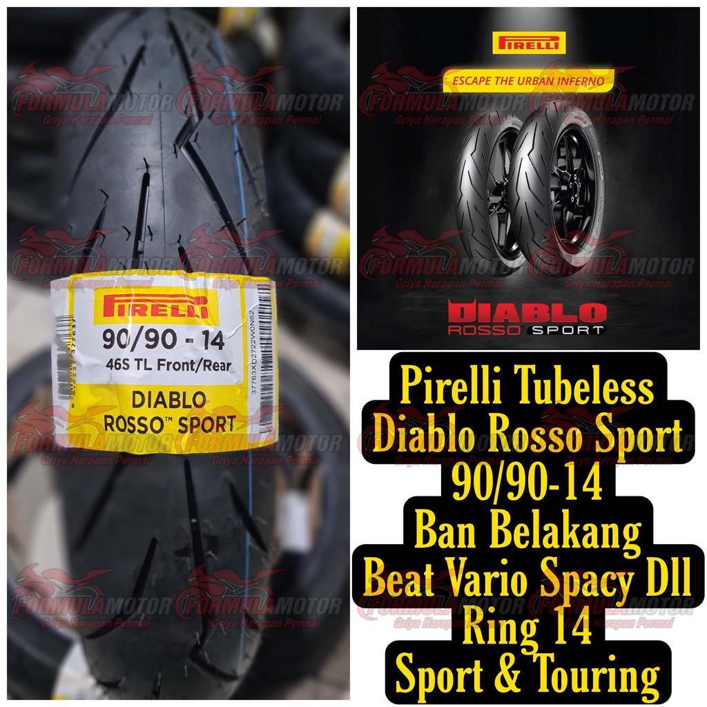 90/90-14 Ban Pirelli Diablo Rosso Sport Tubeless - Ban Touring Motor Matic Beat Vario Spacy