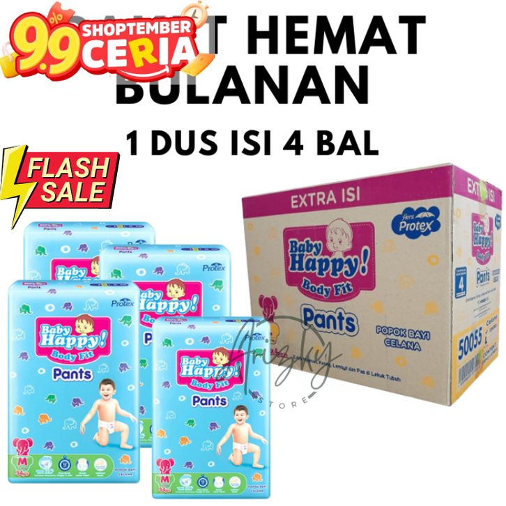 (FREE ONGKIR) BABY HAPPY PANTS L30 / M34 /XL26 / XXL24 [1 DUS] / PAMPERS BAYI / POPOK BAYI / PAMPERS BABY HAPPY 1 DUS
